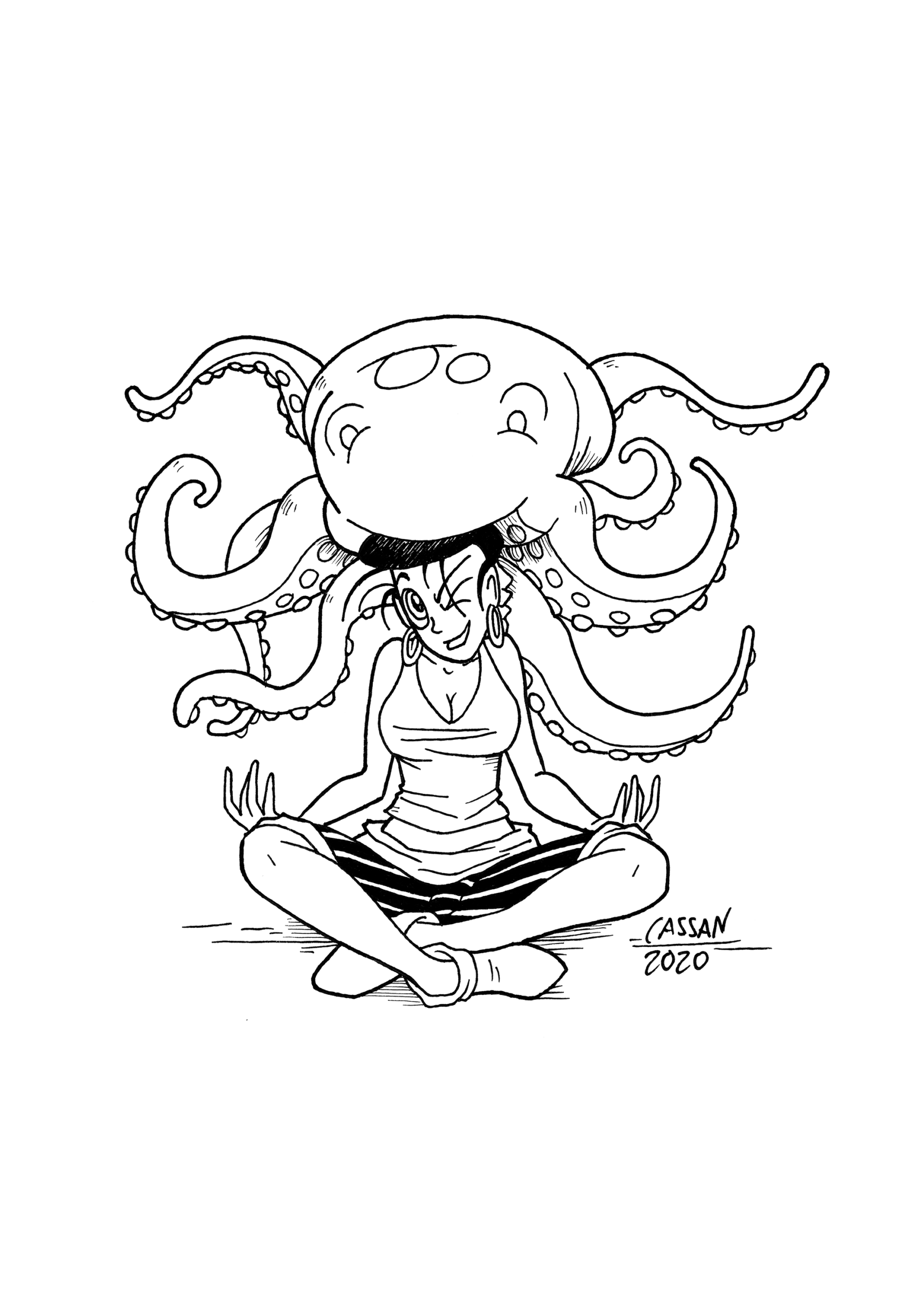 Motiv: Jayne Diamond mediterer. Sprutten sidder på hendes hoved.